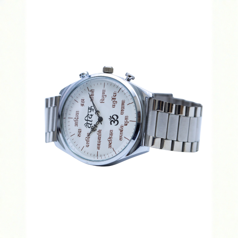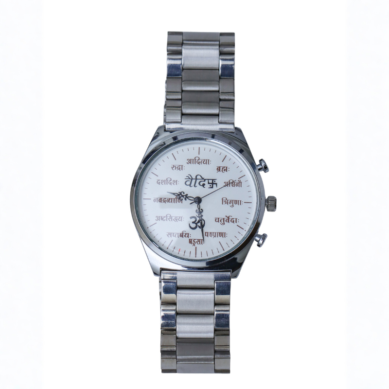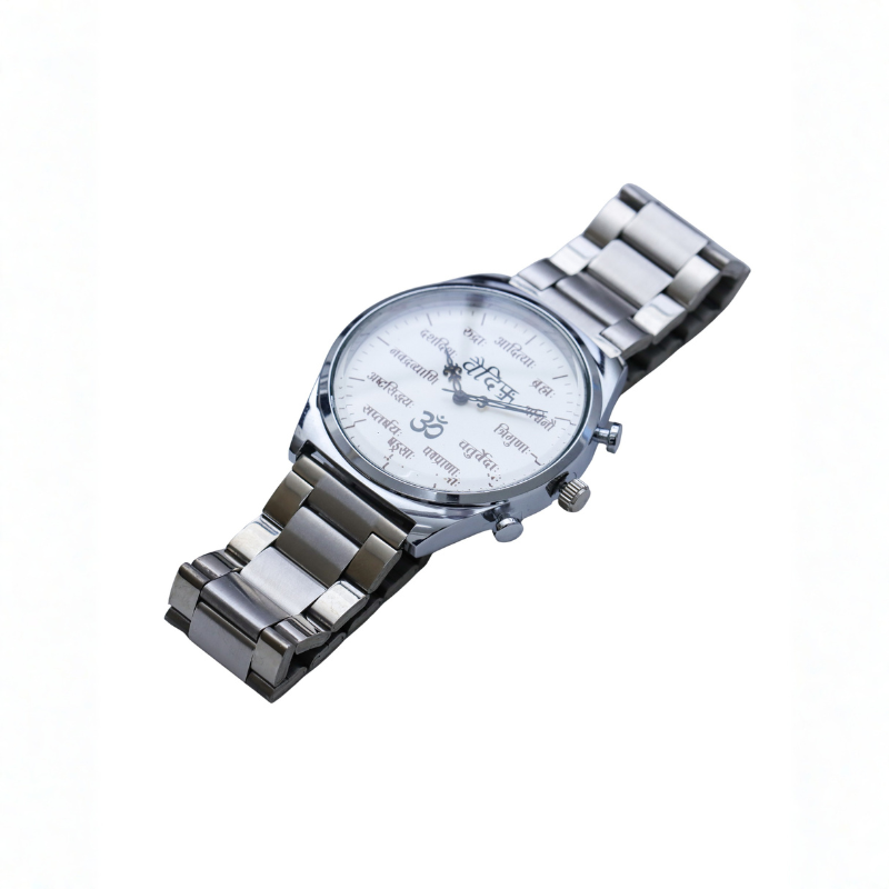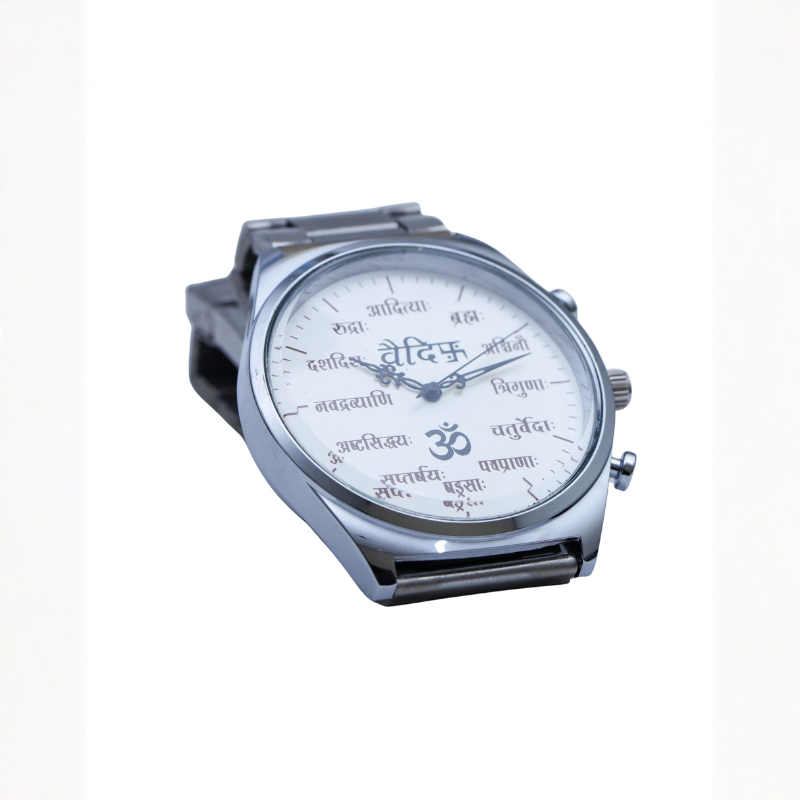The Vaidik Aura – Silver Steel Edition is a timeless fusion of ancient Indian wisdom and modern luxury. Designed for those who value culture, spirituality, and style, this watch is more than a timepiece – it is a powerful statement of purpose and pride.